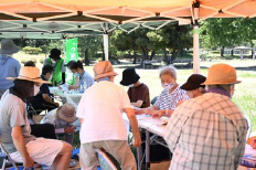 猛暑のなか参加者がどれだけ見えるか心配でしたが、モルック(木の棒を使って木の棒を倒す)の体験と、血圧・血管年齢・体組成計・握力・足指力の健康チェックに96人が参加されました。